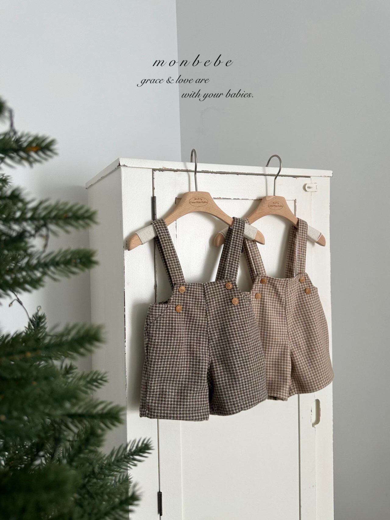 〖送料無料〗monbebe⌇ Window check suspender pants